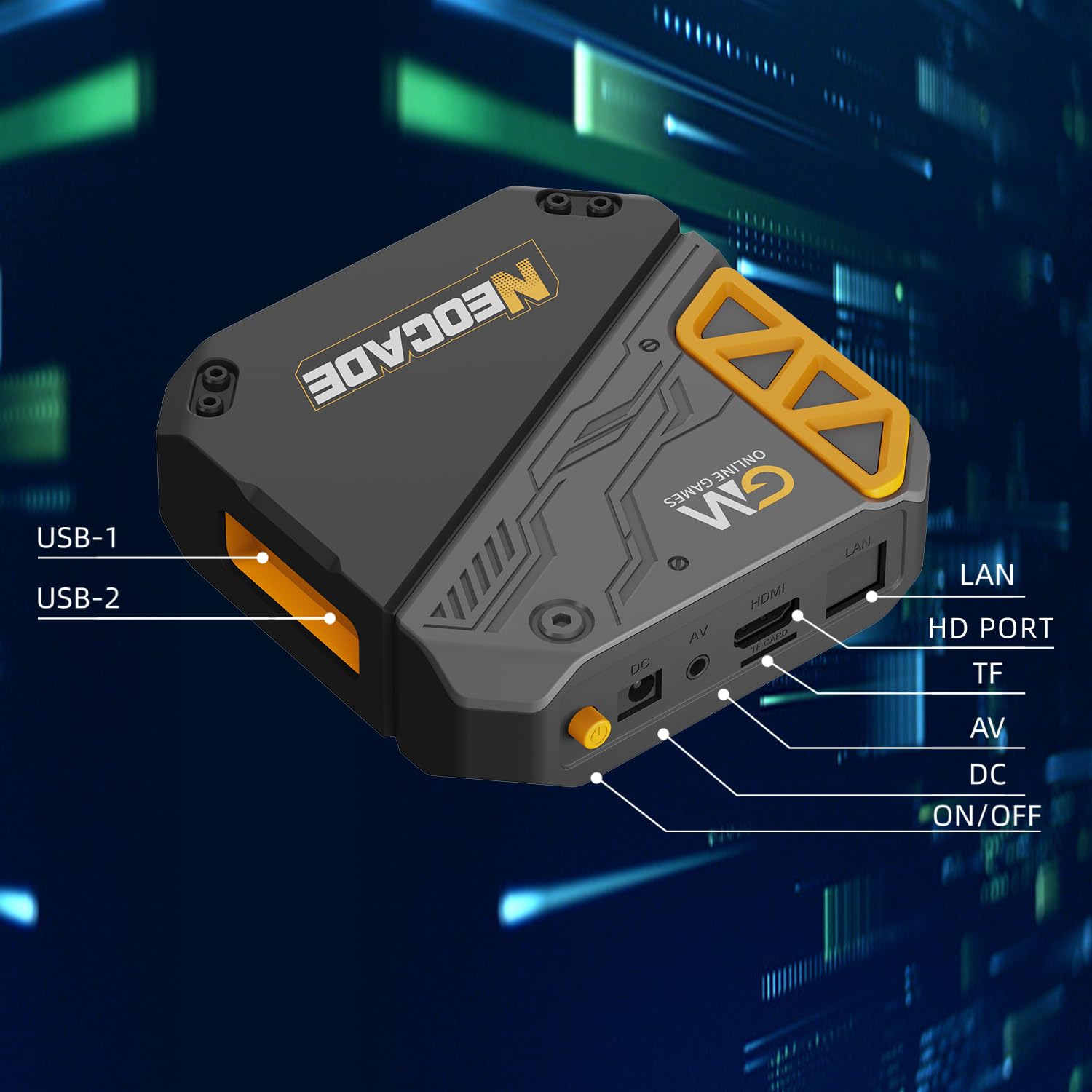 NEOCADE Retro Gaming Console ,30+ Classic Licensed Games,Android System ,GlobalMatch Online Gaming Platform ,Dual 2.4G Wireless Controllers ,Plug & Play TV Game Stick