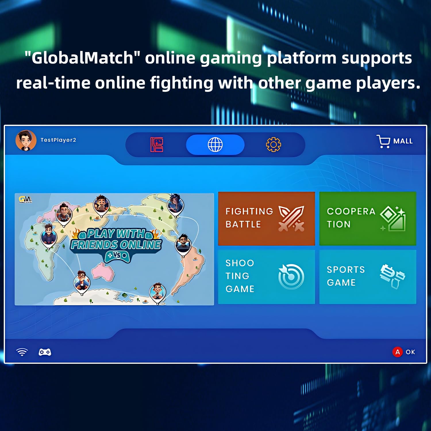 [Online Fighting Gaming System]: Online Multiplayer Support: With the innovative online gaming platform “GlobalMatch,” this video game console allows you to connect with gamers from around the world. Engage in real-time battles, team up with friends, and compete against other players to test your skills and become the ultimate champion.