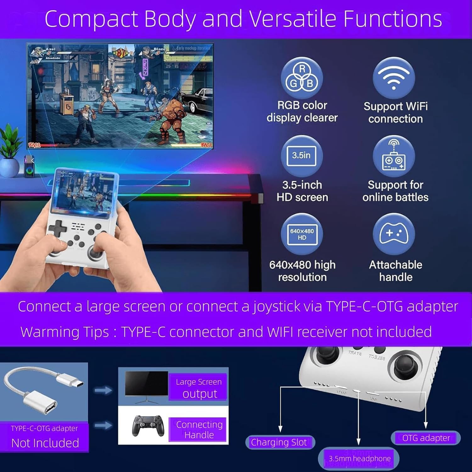🌟【3.5 Inch IPS High-definition Screen】Equipped with a 3.5-inch IPS screen, this handheld gaming console offers vibrant colors and sharp visuals, enhancing your gaming experience.