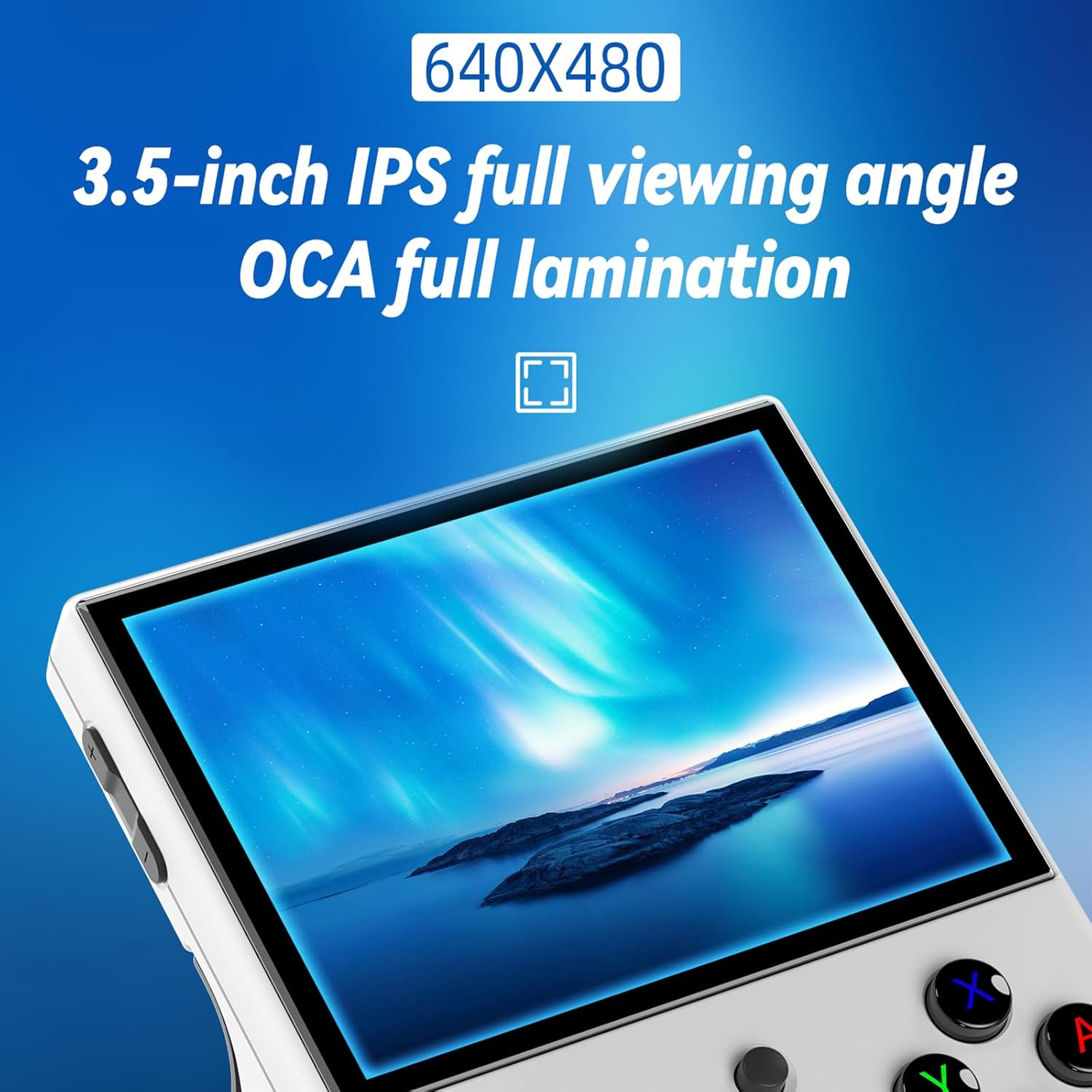 RG35XX Plus Retro Game Console,3.5 Inch IPS Screen Built-in 64GB TF Card,with 3300mAh Battery Linux System Retro Games Consoles,Support HD and TV Output Casual Game Console(White)